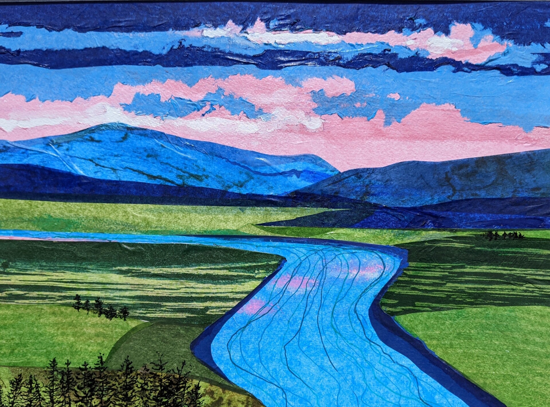 The River, 19.5 x 17.5, white frame, $150.00